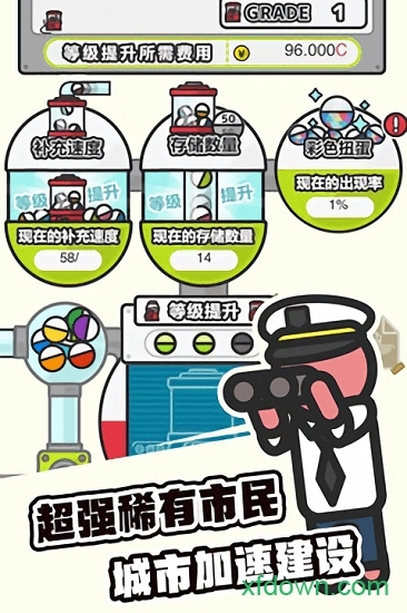 扭蛋城市的创意和其他建造游戏有所不同,玩家要通过扭蛋来获取市民,再依靠这些市民逐步打造出一座繁华的城市。