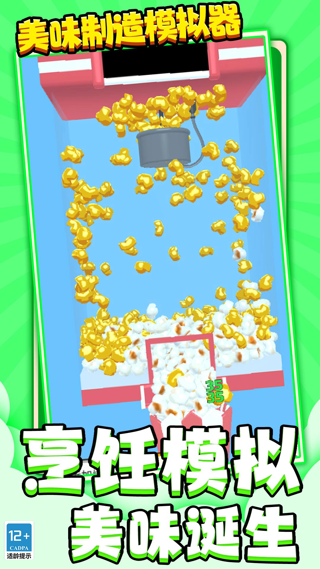美味制造模拟器是一款趣味模拟游戏,玩家可自由操控爆米花机,在限定时间内制作更多爆米花,依据客人需求制作对应口味的爆米花,持续完成新的关卡任务,快速升级爆米花机以提高效率,通过简单操作即可收获爆米花,不断吸引更多客人,让玩家轻松获取海量金币奖励。