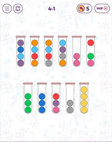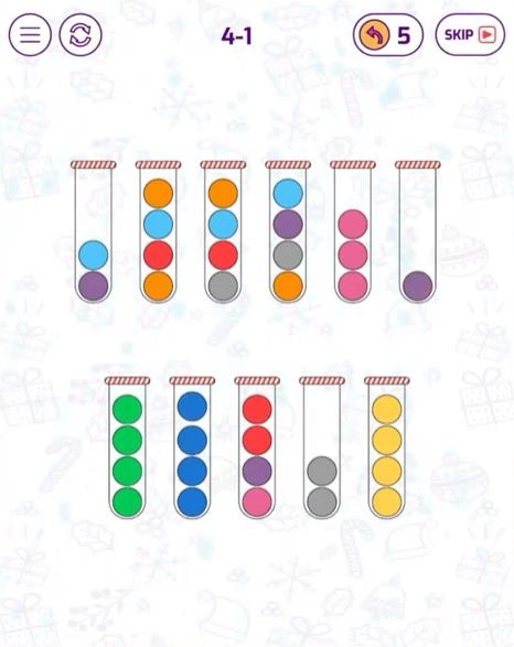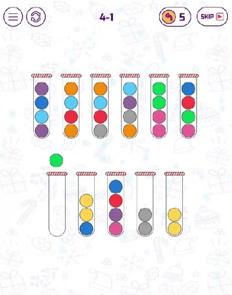 3. 支持自定义泡泡皮肤与背景,打造独一无二的排序风格。观察所有试管中的泡泡排列,规划转移顺序。
