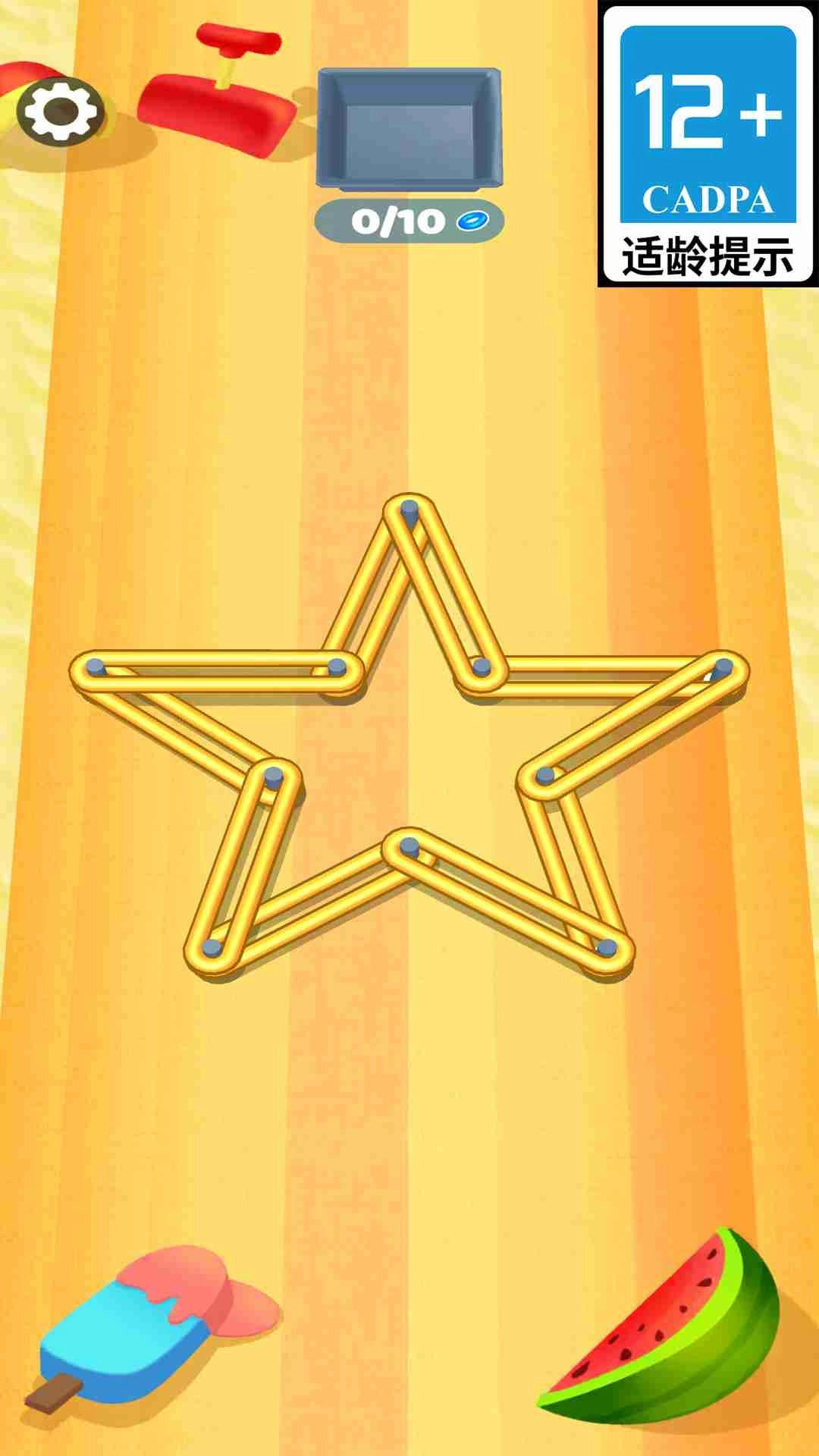 完成一关即可解锁下一关,游戏难度会逐步提高,橡皮筋的数量以及缠绕的复杂程度也会随之增加。