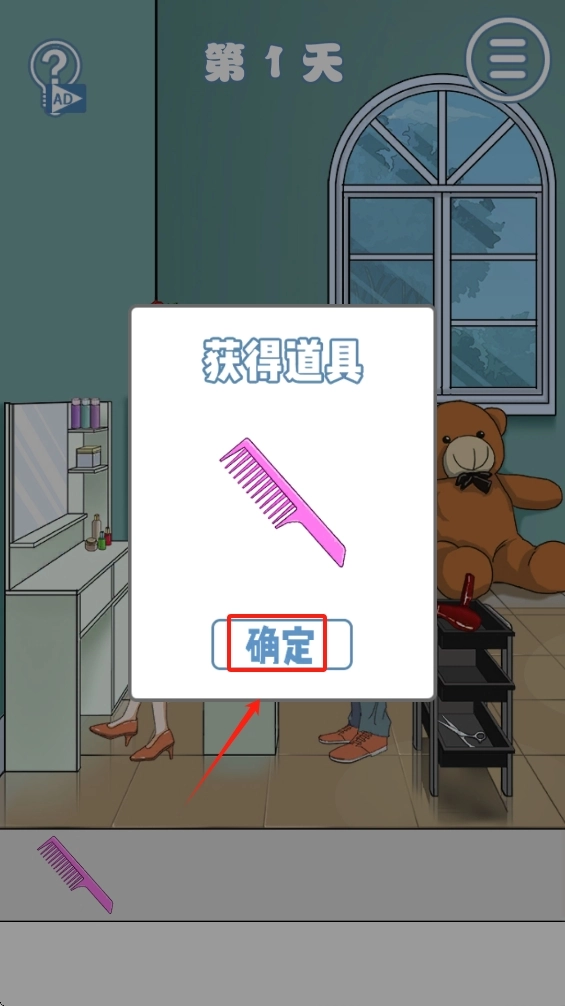 获取道具后,点击“确定”按钮,关闭弹出窗口,以便继续推进游戏流程。