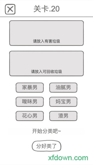 3、数十个关卡等你来挑战,快来看看你的前男友究竟属于哪类垃圾。