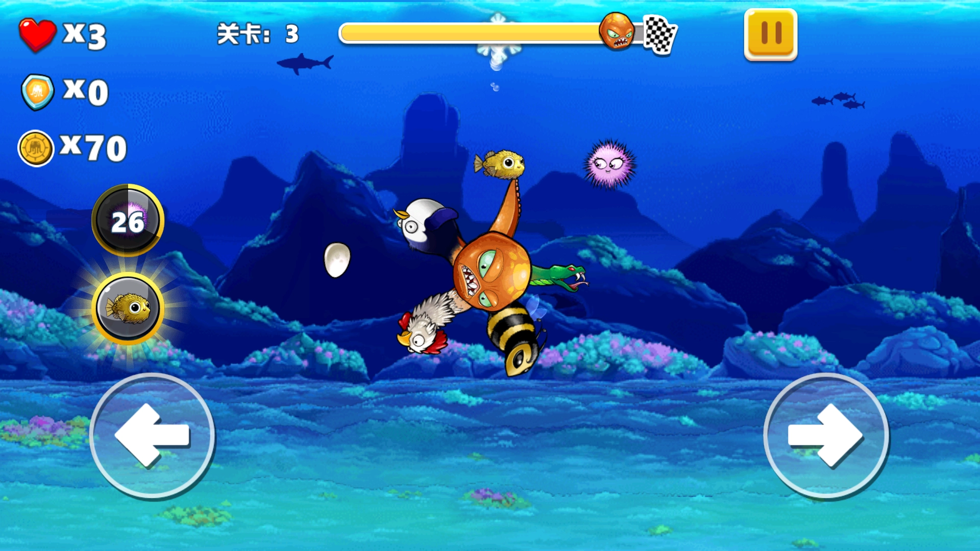 玩家要依靠操作技巧,在极具挑战性的海底关卡里存活下来并战胜敌人。