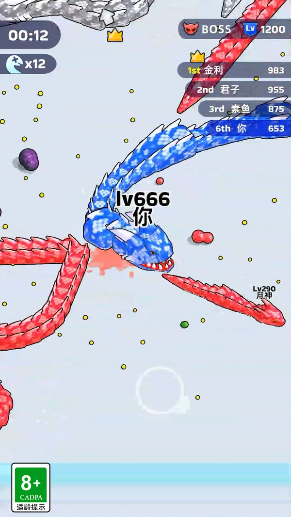 操控蛇的身体去吞食光点,或是战胜其他对手,让自己慢慢变大,以此来挑战实力更强的敌人。