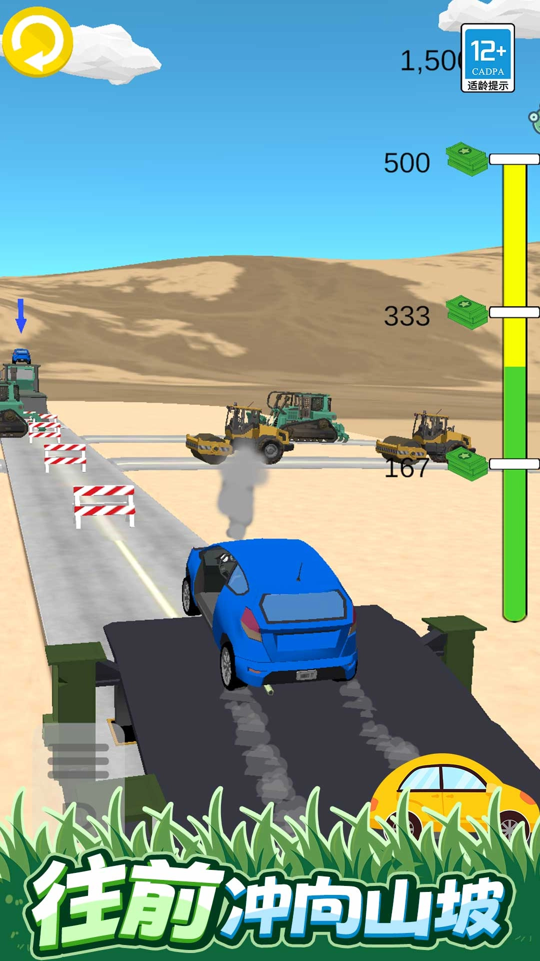 1、利用长按屏幕控制车速、松开刹车的操作方式,在繁华都市、山间公路等不同场景中穿梭时,根据路况提前预判。
