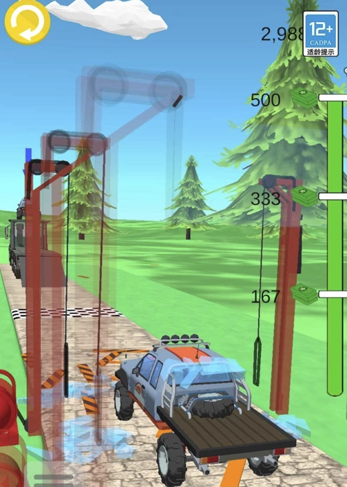 2、通过完成关卡、达成任务与成就获取货币,收集普通轿车到重型卡车等不同车辆,并对其进行升级。