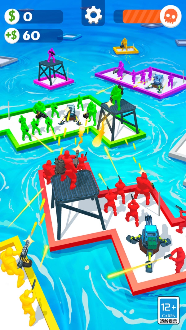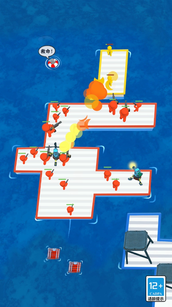 木筏生存闯关挑战游戏是一款融合建造与战斗元素的海上漂流类游戏。玩家开局会得到一个小方块,以此作为冒险的起点。游戏的核心玩法是在辽阔的海域上漂流,通过收集海面漂浮的方块和人员,逐步扩大自己的岛屿规模,同时提升战斗能力。方块可用于岛屿的建造与拓展,人员则能加入玩家的队伍,提供各式各样的技能支持。随着游戏进程推进,玩家能够通过持续建设和战斗,不断壮大自身的岛屿势力。