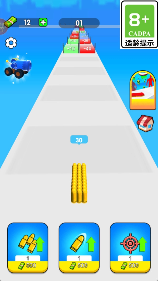 合理规划路线,收集这些增益道具,持续提升子弹队列的长度与宽度。
