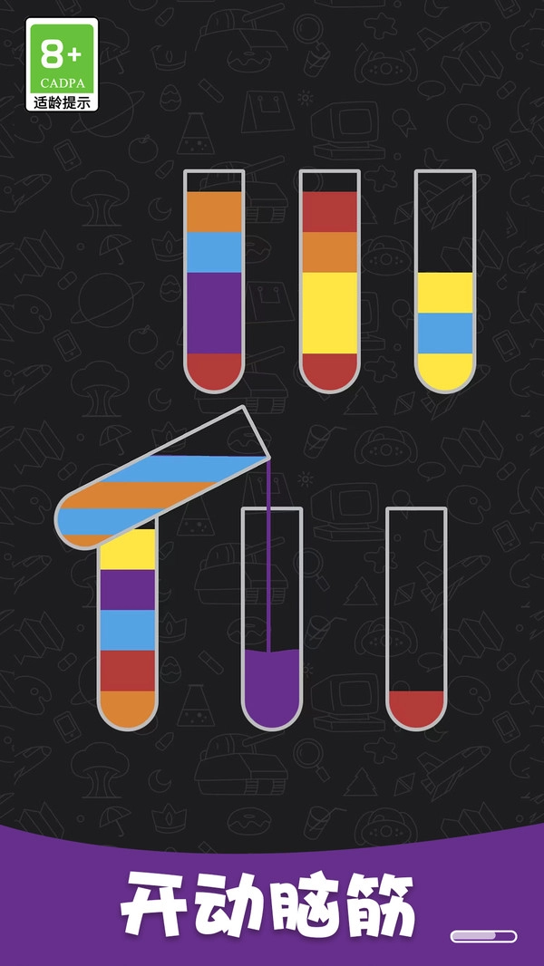 在每一个关卡里,你都能看到好几个盛着不同颜色液体的试管或者容器。