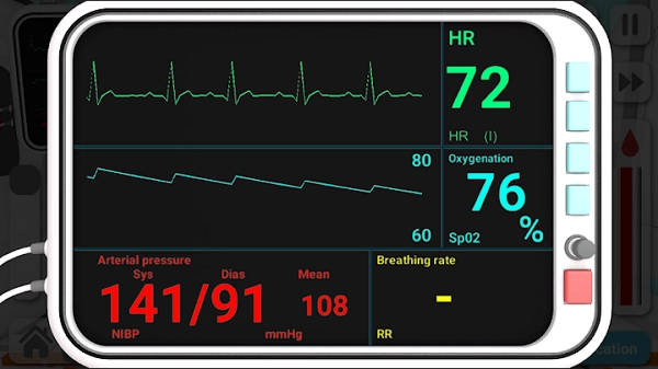 游戏完整还原了医院急诊室的环境,配备了心电监护仪、除颤器等专业设备的简化操作界面。