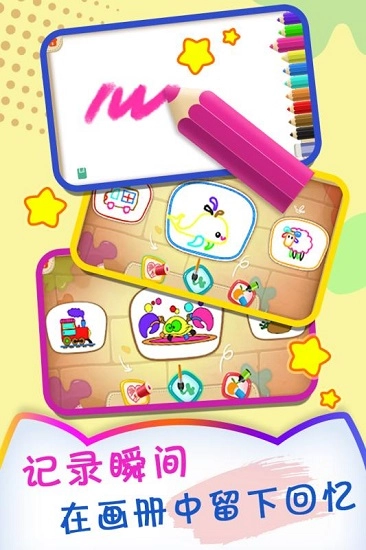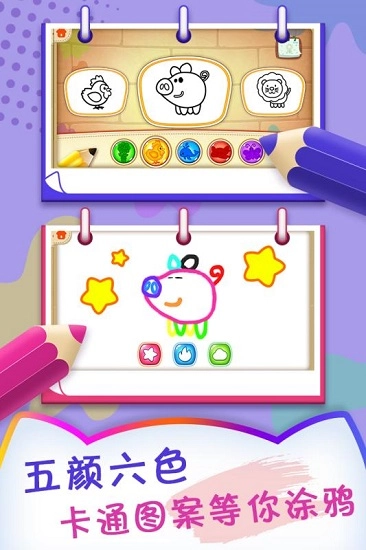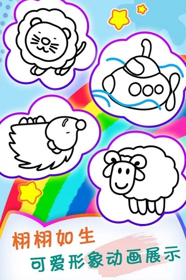 1、游戏画面运用卡通风格设计,孩子们能在此尽情创作绘画,充分发挥自己的想象力;