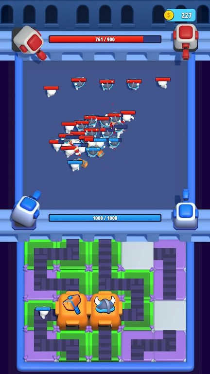 这是一款创新竖屏策略塔防游戏,玩家通过搭建传送带路径来召唤士兵,并指挥他们向敌方基地发起进攻。