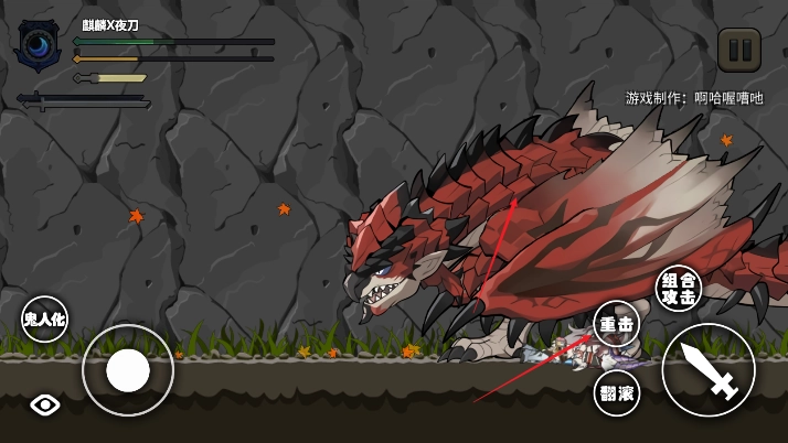 2D这款自制游戏主打2D横版动作玩法,融合了明日方舟与怪物猎人的特色元素,整体充满挑战感; 2. 采用经典横版卷轴模式,同时加入了现代动作游戏标志性的流畅操作体验与连招机制;