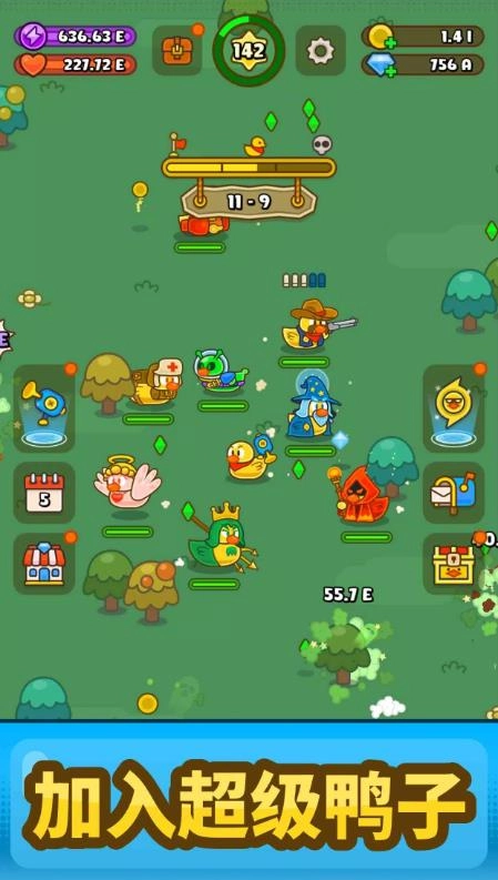 支持离线收益,不在线也能持续成长,告别时间焦虑。2、有数十种鸭子英雄可供解锁与培养,打造专属于你的战队。3、轻度策略搭配系统,依据敌人类型合理组合鸭子队伍,提高战斗效率。