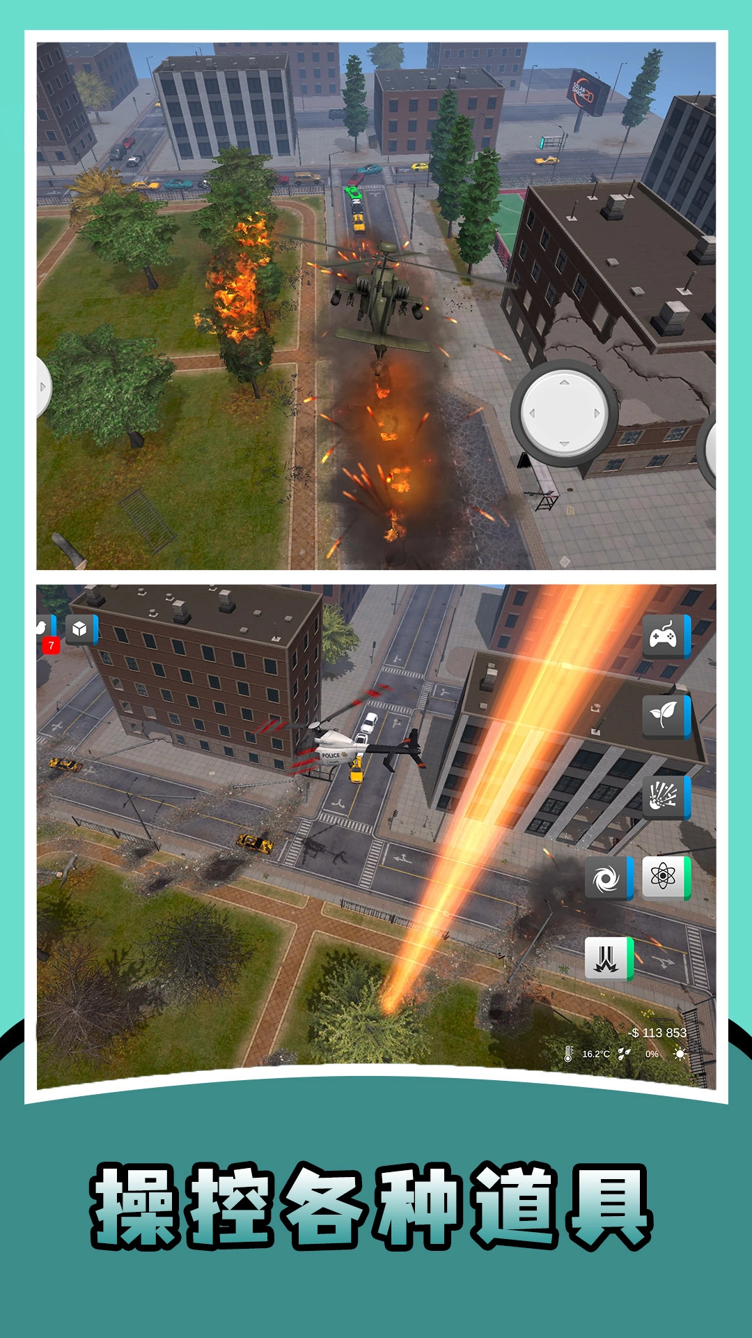 在开放的城市场景里,借助选定的工具对城市展开破坏,能够自主挑选破坏的区域与方式。