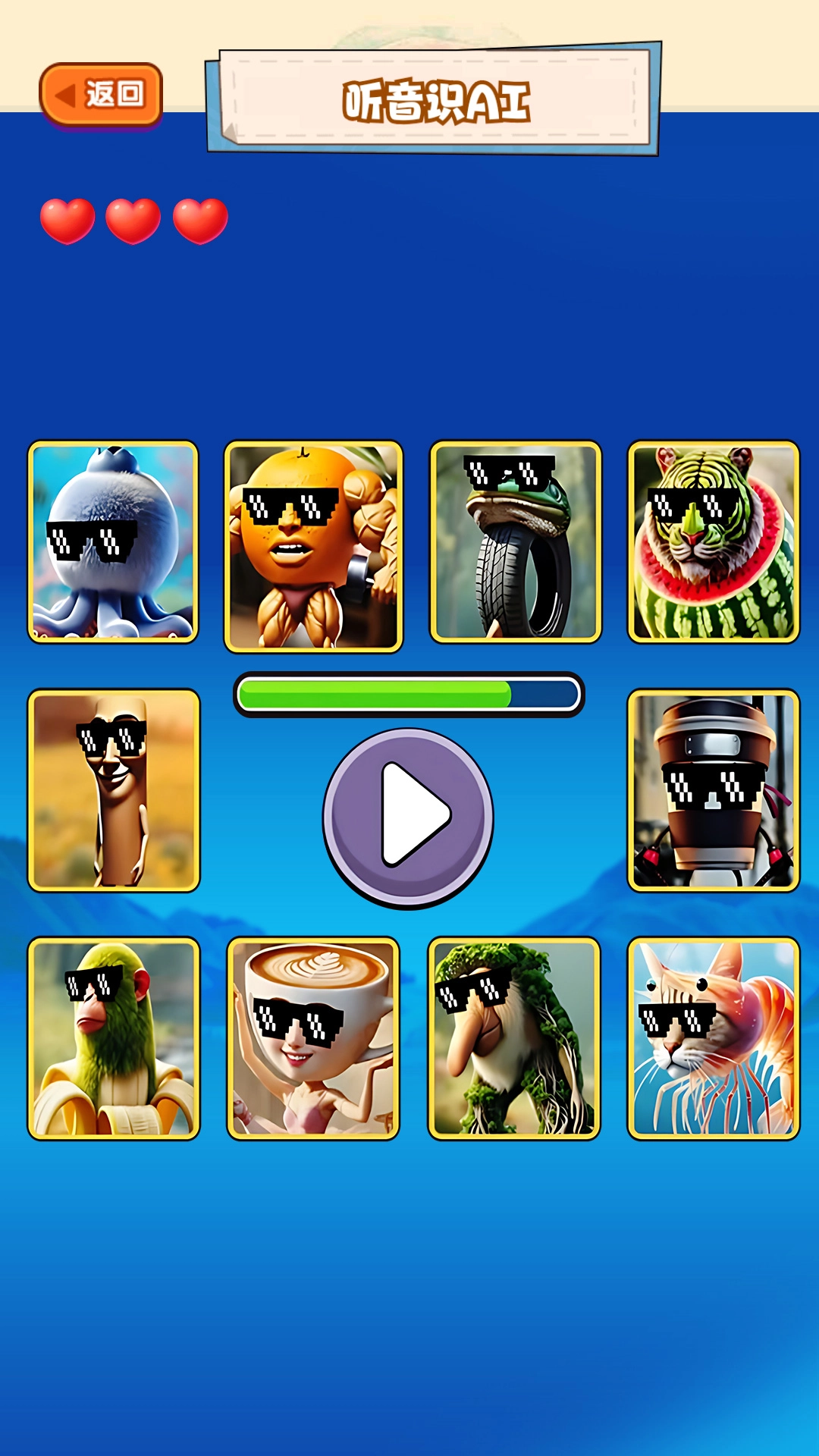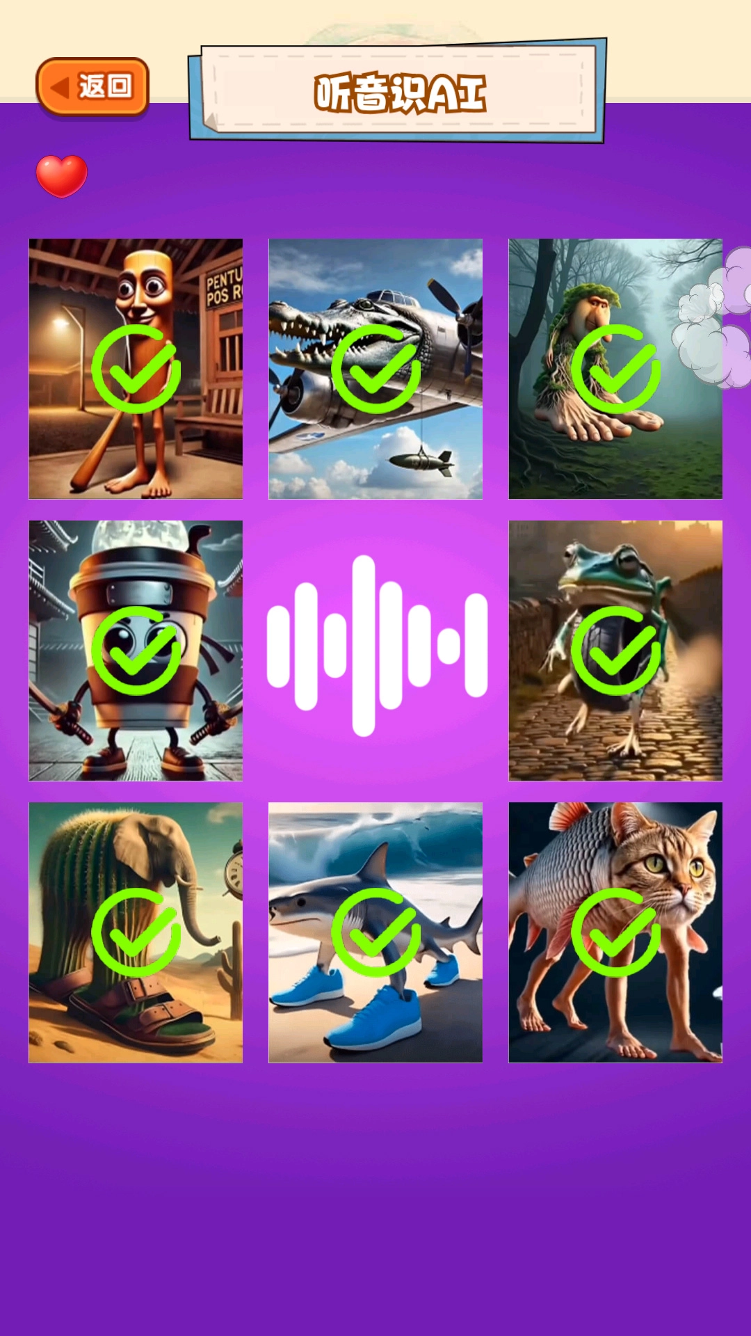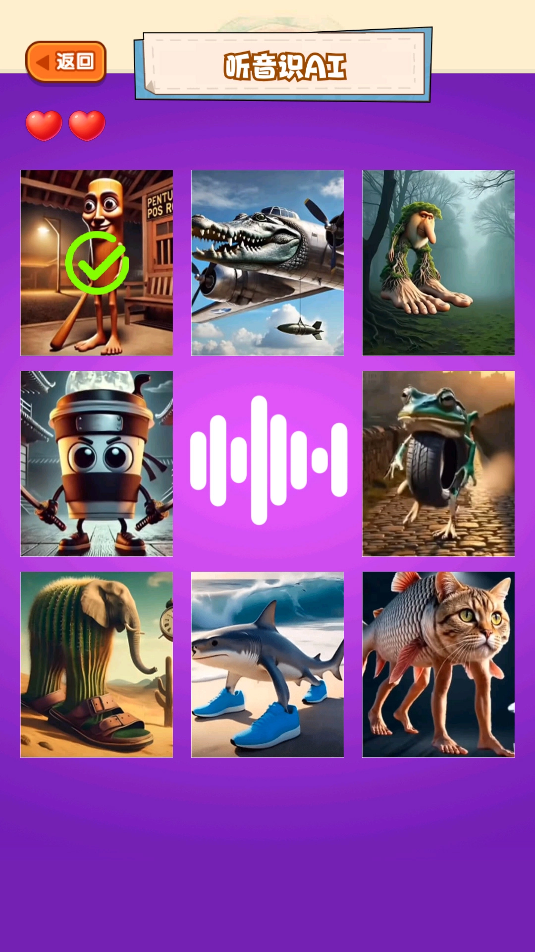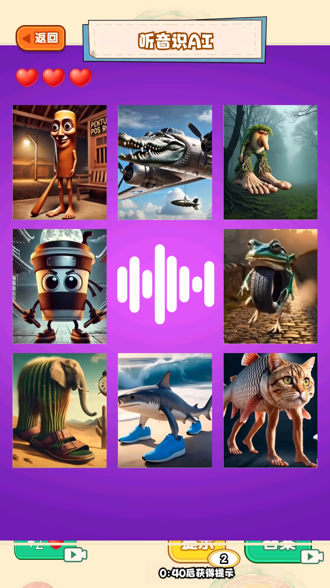 2、面对不同难度关卡,简单关卡利用充足线索快速合成,困难关卡善用提示道具放大音频细节、查看轮廓局部。