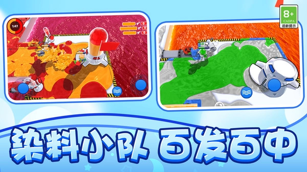 用颜料涂满战场,抢占更大区域以获取分数,同时干扰对手的涂鸦行为。
