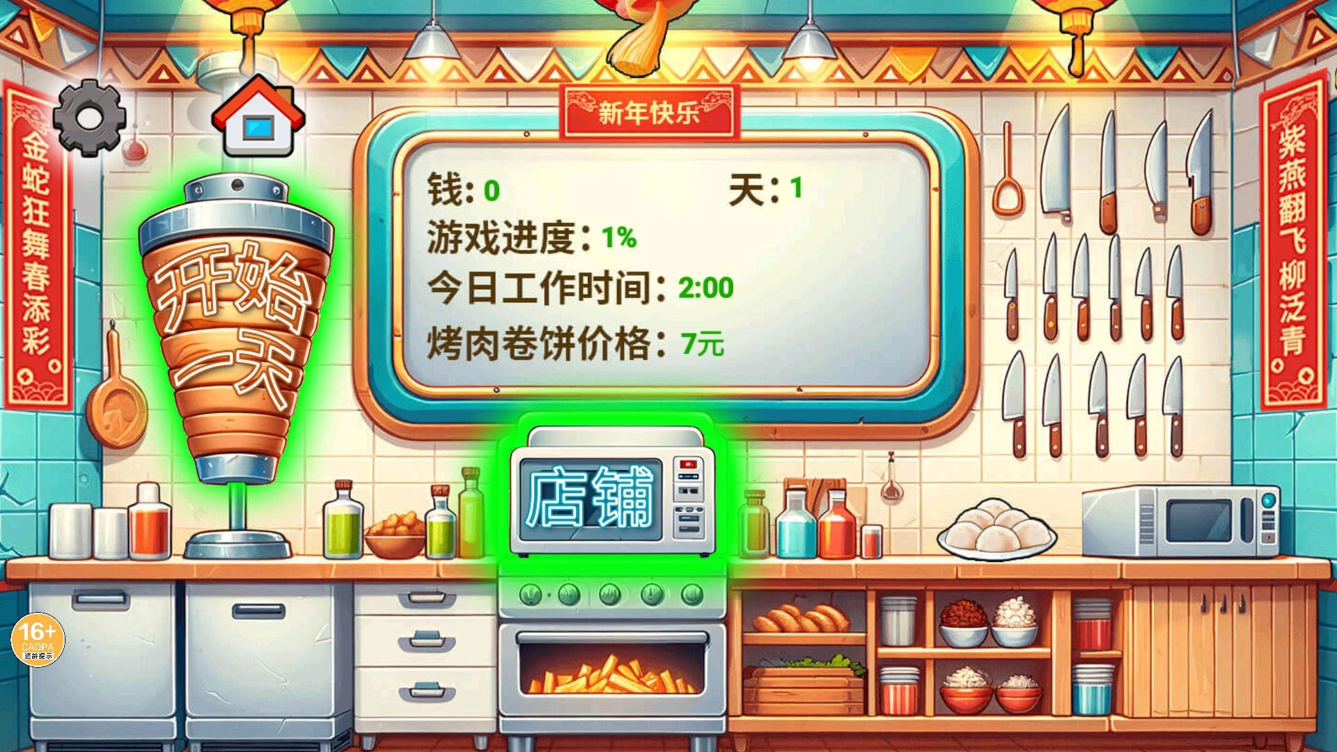 经营一家洋溢着新春氛围的新春沙威玛小店,化身店主,围绕春节主题展开经营。