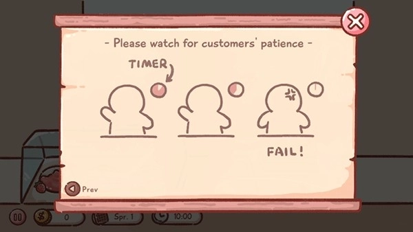 -注意观察顾客的耐心时间,耐心耗尽顾客就会离开。