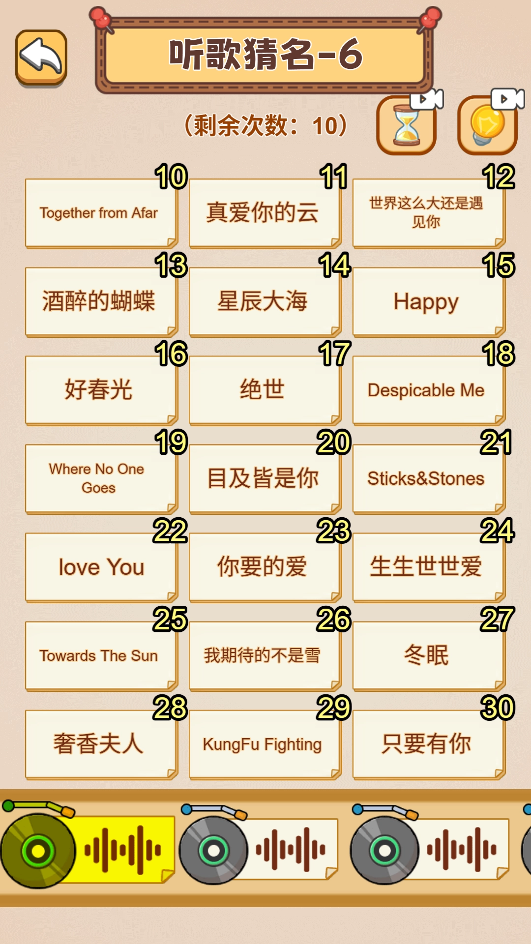 听旋律猜歌名,猜对就能得分,还能用金币解锁新的歌曲包,不断挑战自我