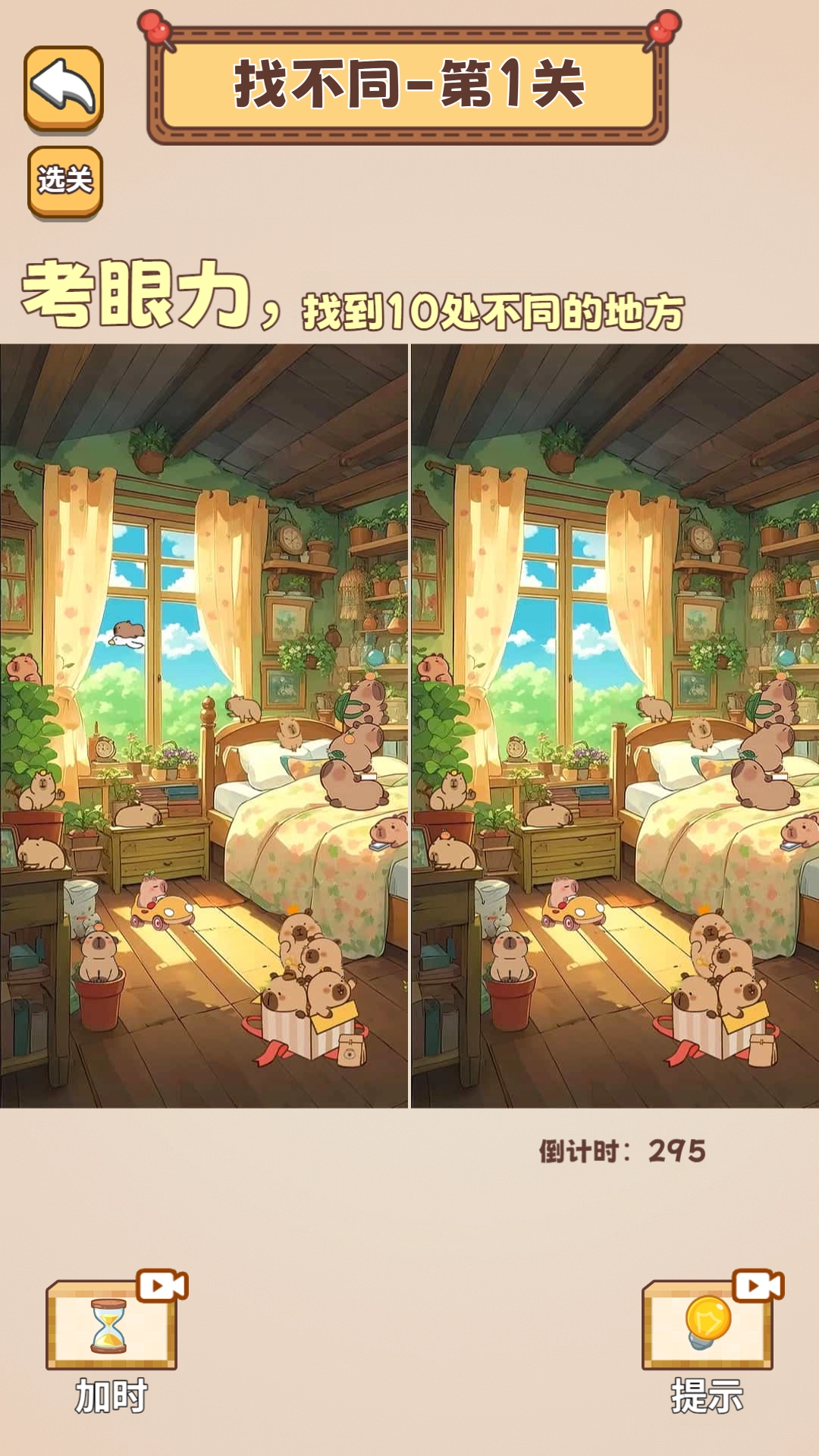 对比两幅图片,指出它们之间的不同之处。当你找齐指定数量的不同点后即可通关,游戏过程中还能使用加时和提示功能。