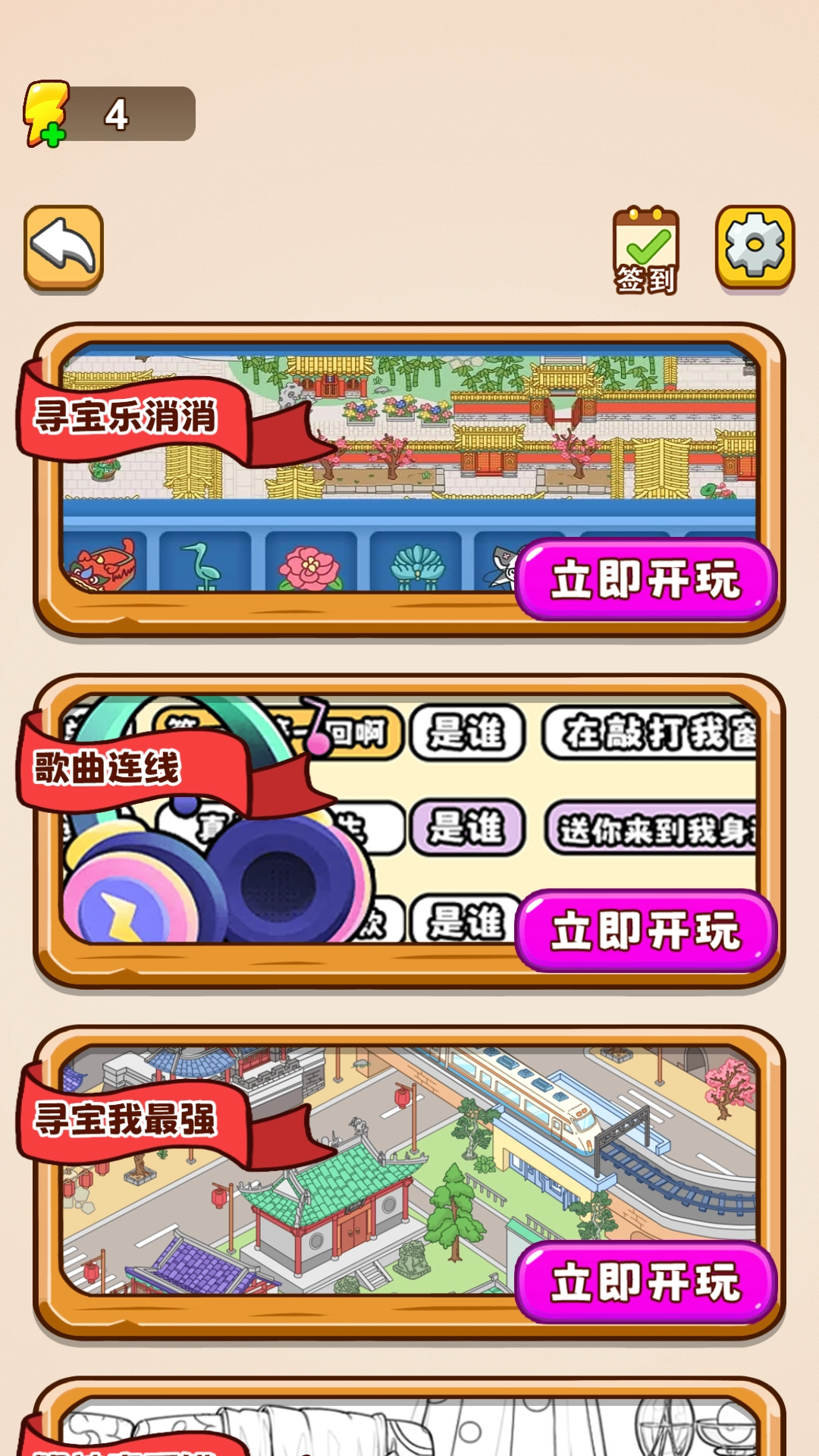 从歌曲连线、找茬、听歌猜名等模式里挑喜欢的玩。