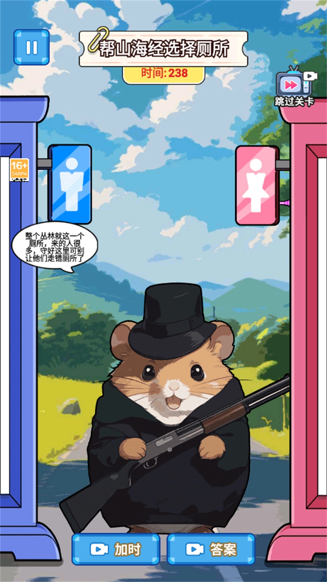 持续挑战关卡,解锁山海经中的全新角色,应对更具难度的性别判断任务,做好厕所所长的本职工作。