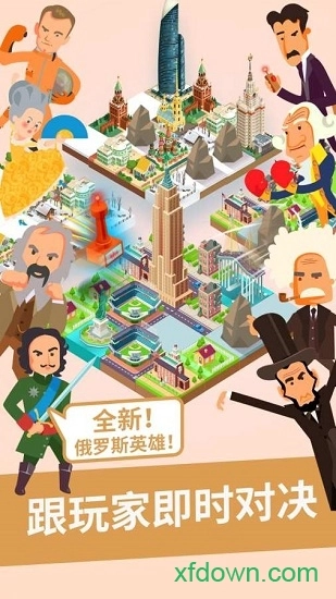 2、2048多人对战模式,支持四人同场竞技,可挑选不同历史名人作为你的英雄,在以2048玩法建设城市的同时,施展独特技能攻击或干扰对手,全力争夺屹立不倒的王者之位。