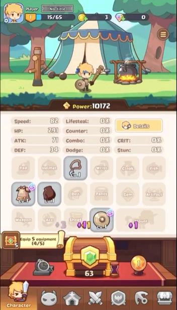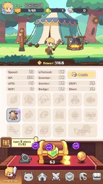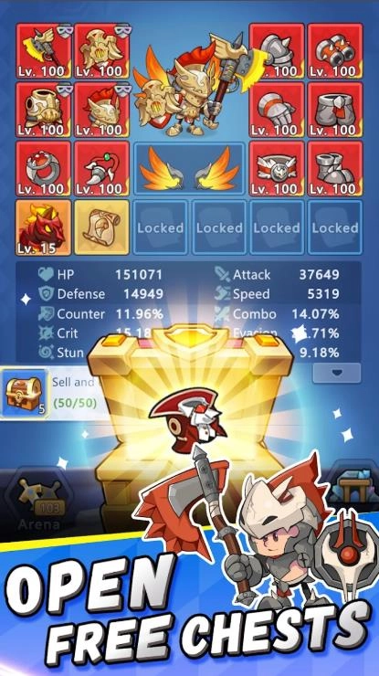 3. 属性搭配系统策略丰富,带来持续挑战的趣味。点击屏幕中央的宝箱开启奖励,不断积累资源。
