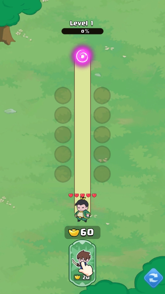 冲关大冒险是一款竖屏操作的休闲割草游戏,巧妙融合了动作战斗、角色养成与策略塔防元素,为玩家带来轻松又畅快的游戏体验。在游戏里,你将化身勇敢的战士,在怪物肆虐的世界中持续战斗、不断升级,解锁更强大的武器装备以提升战力,迎接一波波越来越强的敌人挑战。游戏采用卡通画风与流畅的动作机制,让每一次挥砍都充满打击感与爽快节奏。除了尽情割草的纯粹快感,游戏还加入了塔防布阵玩法,需要你合理布置防御单位辅助战斗,考验策略与操作的双重配合。无论你是想用碎片时间放松身心,还是追求高分突破自我,这款游戏都能为你带来满满的成就感。