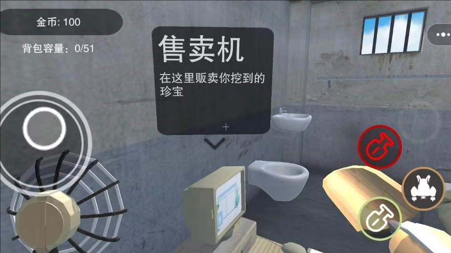 把挖到的道具放进背包,再去售卖机那里兑换金币之类的资源。