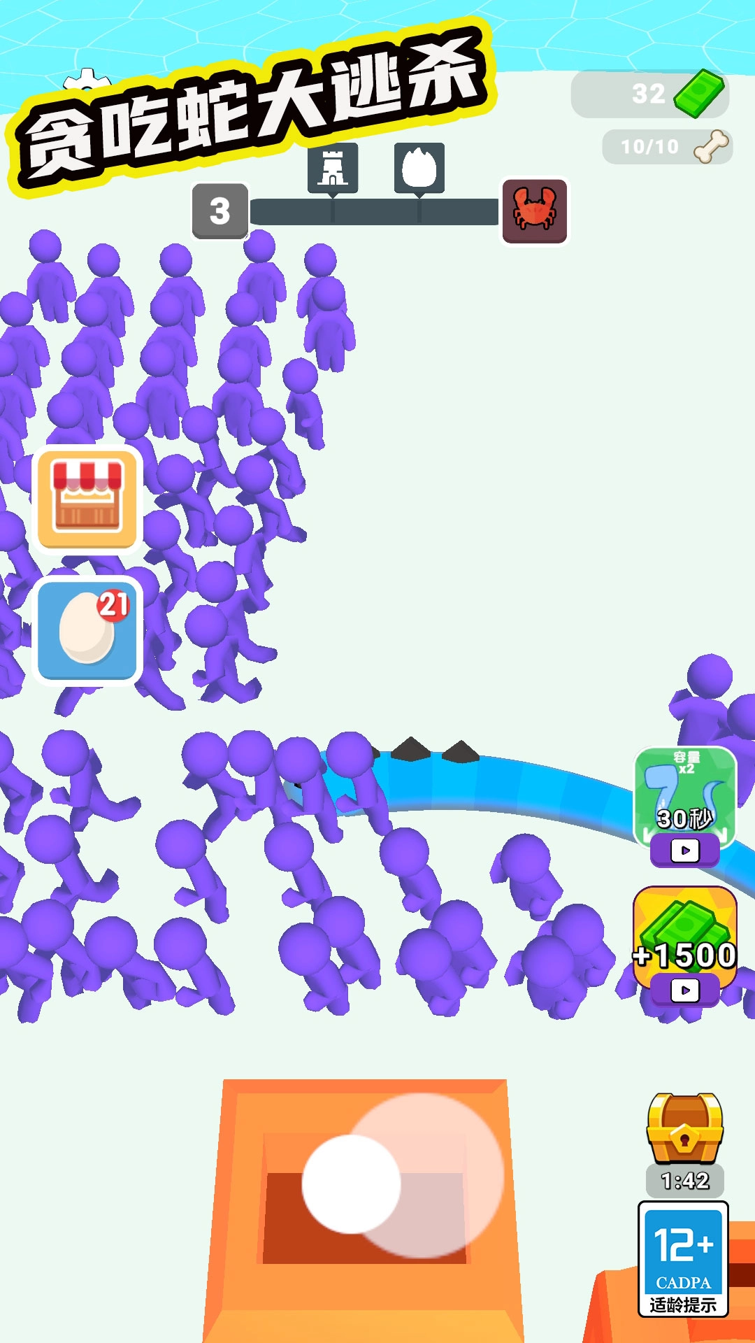 3、吞噬人类会让贪吃蛇获得经验值,等级提升后,贪吃蛇的移动速度、攻击力和生命值都会得到提升。
