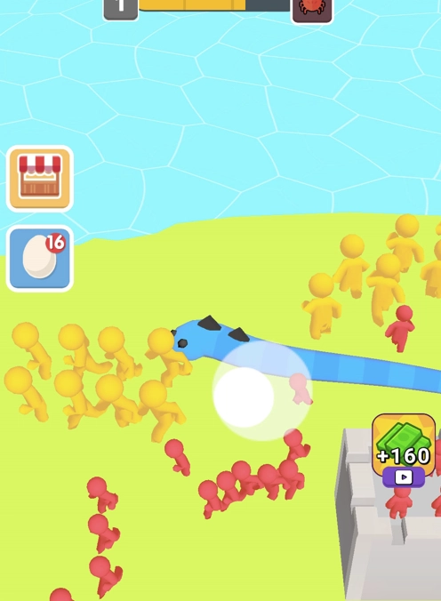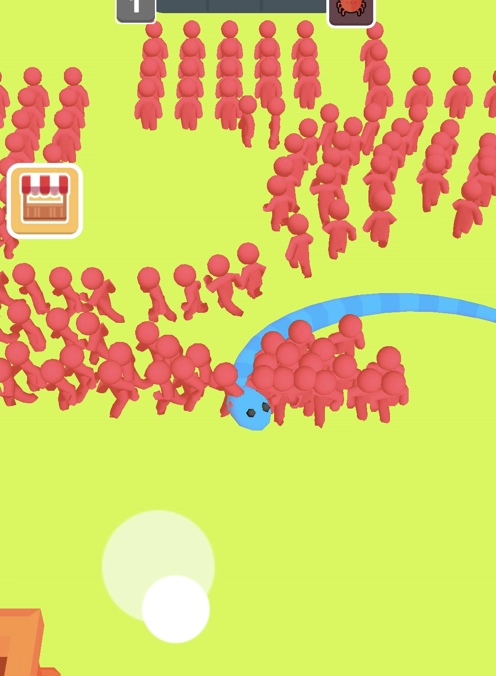 3、面对人类的围攻,利用蛇身的长度优势,将人类驱赶至角落,快速完成吞噬,在人类的包围中生存下来。
