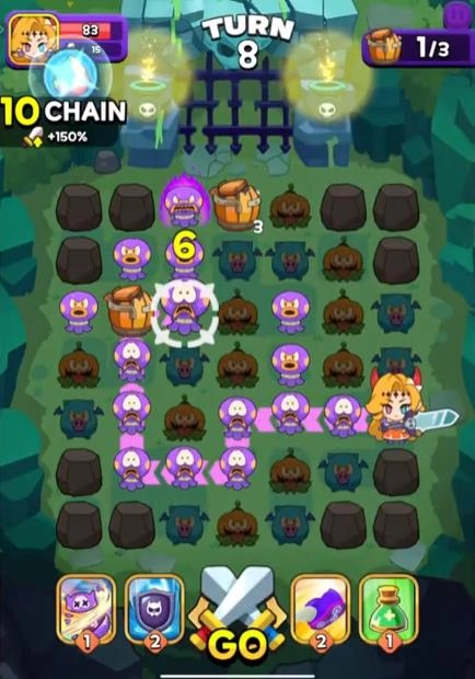 点击三消图块造成攻击,尽量连击提升伤害效率。