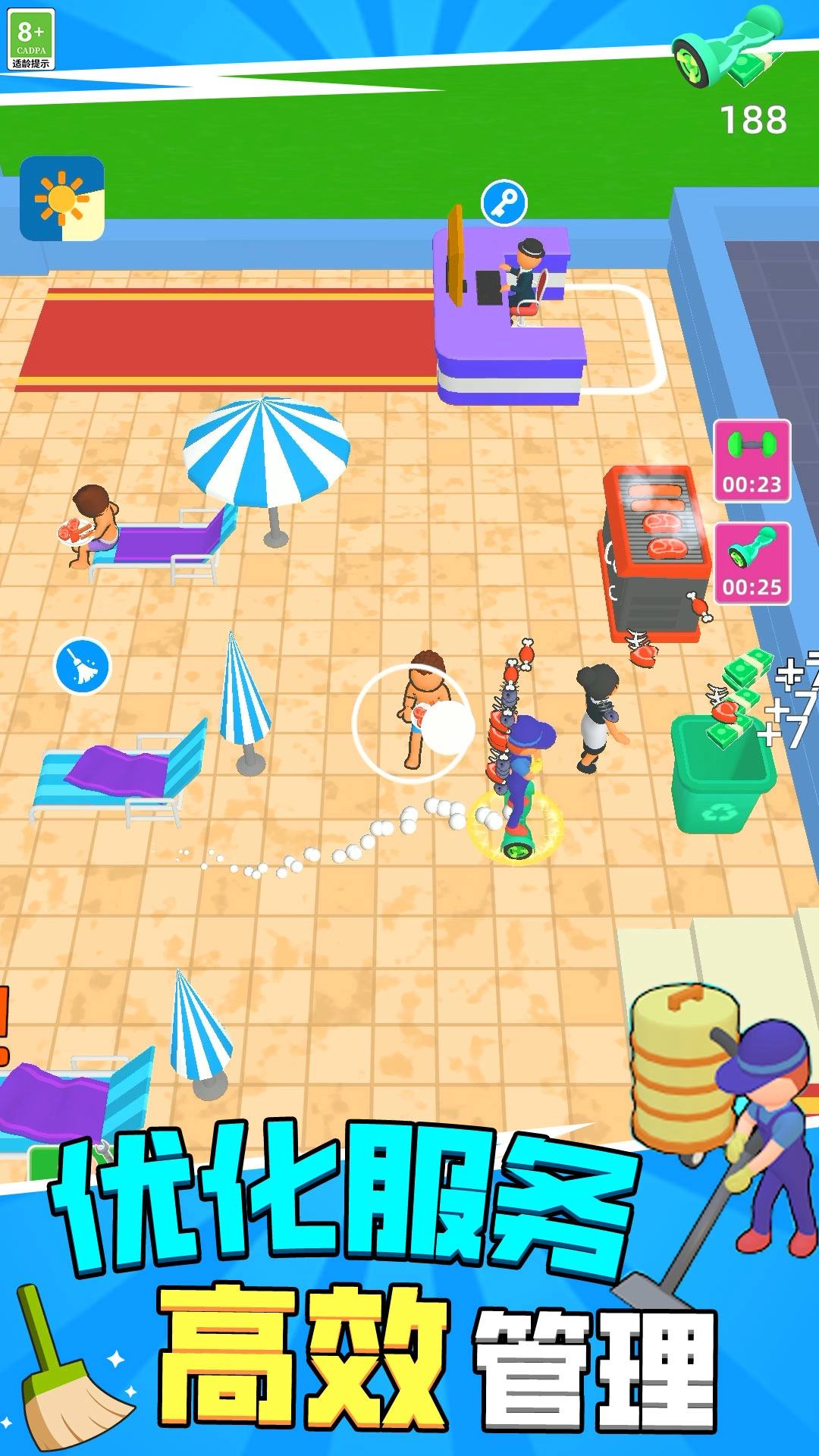 玩家首要的任务是对泳池展开整体规划,各类设施是泳池能够正常运营的基础保障,之后还能依据实际的经营需求进行扩建或者升级操作。
