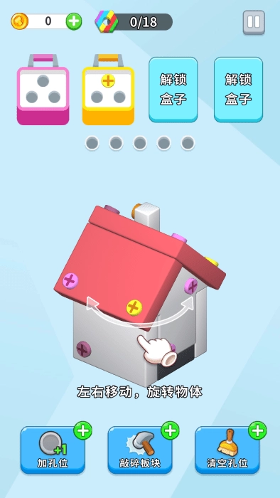 成功地消除所有螺丝,就可完成关卡,获得奖励。