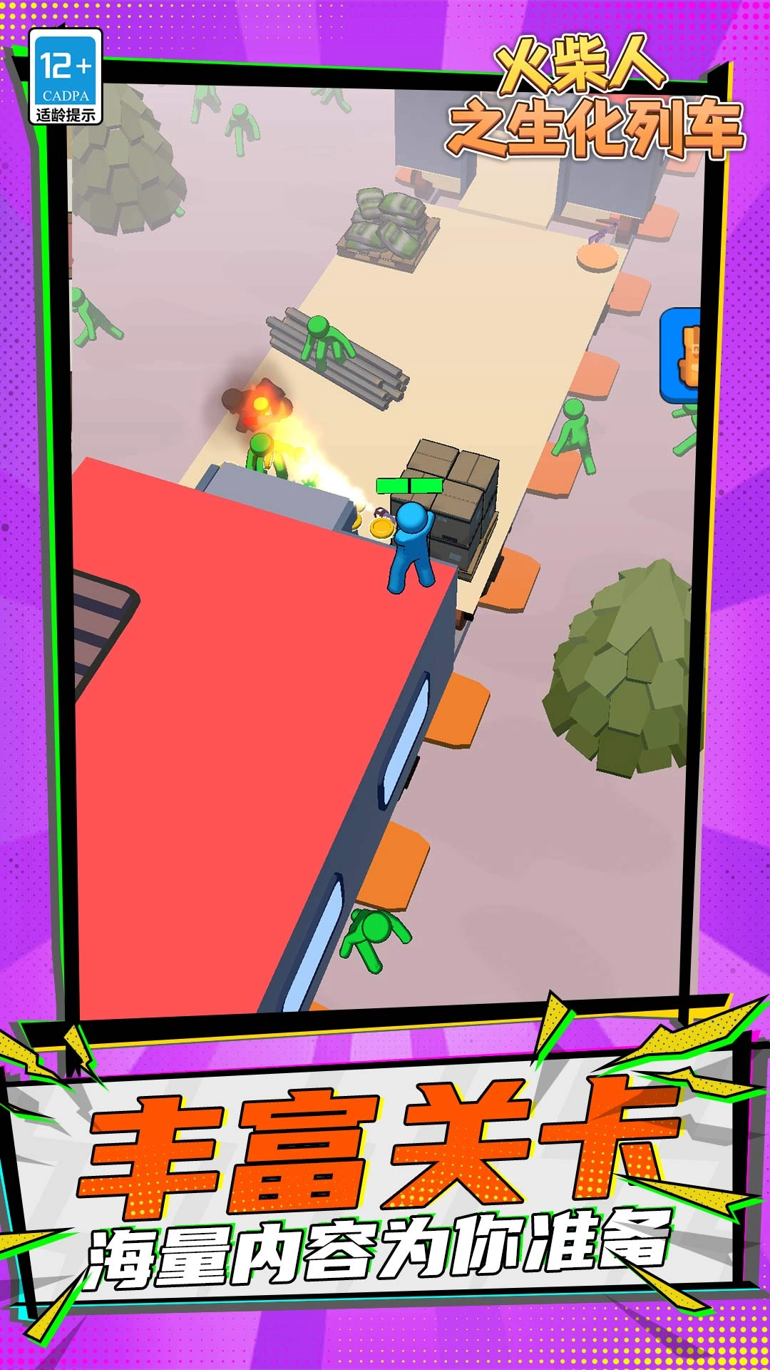 《火柴人之生化列车》是一款采用火柴人画风的策略生存游戏。玩家在游戏中需收集各类材料搭建轨道,以此保障列车能够持续前进;与此同时,还得与生化人展开战斗,防止它们对列车造成破坏。游戏内提供了种类丰富的武器供玩家获取和使用,在与生化人对抗时,玩家可以灵活切换不同武器,并且要注意保持与生化人的距离,因为受到攻击会扣除血量,一旦血量归零,游戏便宣告失败。玩家需要击败关卡中的生化人来获取充足的资源,进而建造轨道,引导列车朝着安全区域前进!