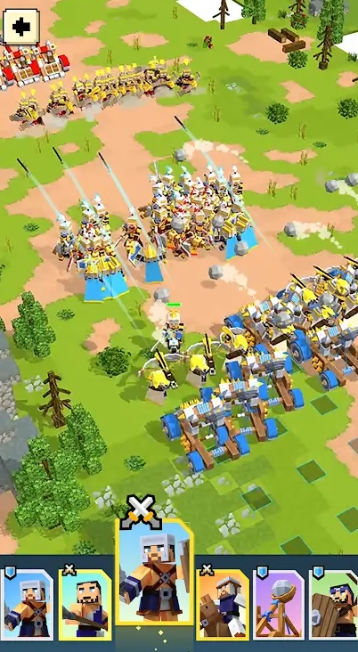 《工艺王国军队之战》是一款将策略建设与实时战斗相融合的沙盒战争模拟游戏。作为王国统帅,玩家将在方块构筑的奇幻世界里搭建基地、训练军队,与其他玩家或AI势力展开战术对决。游戏既考验城市规划与资源调配能力,也要求玩家精通兵种搭配与战场指挥的技巧——你可以组建专属的钢铁之师,灵活运用弓箭手、骑兵、投石车等单位,设计攻防兼备的战术组合。凭借精致的像素画风、高度自由的建造系统,以及丰富多元的战略选择,每场战斗都充满未知与挑战。在这里,智慧与勇气是制胜的关键,你是否已准备好带领王国踏上胜利之路?