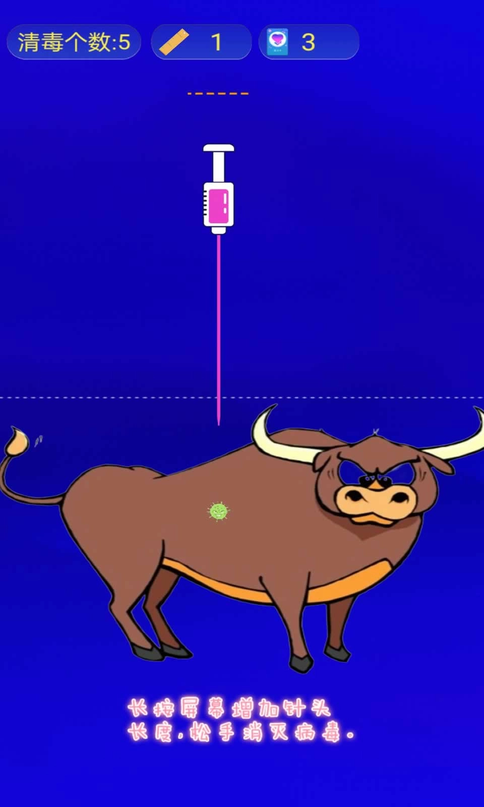 松开手指:针头便会发射出去攻击病毒