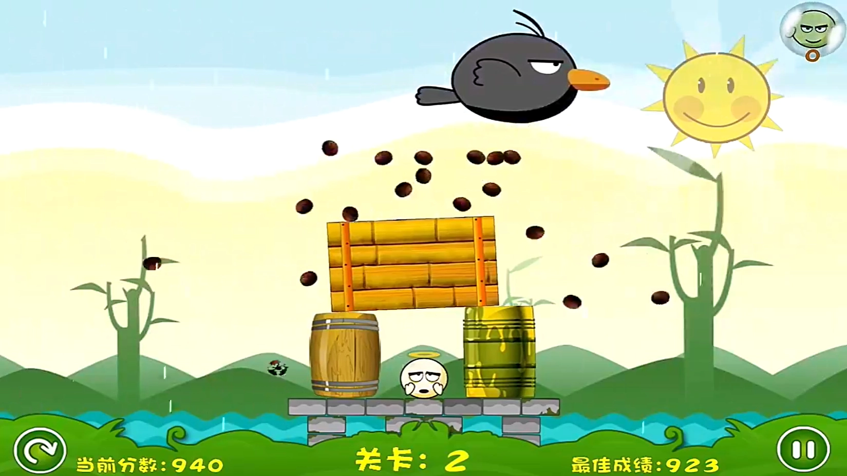 二、进阶策略篇 道具搭配技巧: 弹簧+斜坡:让毒液炸弹弹飞更远,甚至直接砸回乌鸦脸上! 磁铁+金属箱:吸附毒液炸弹,形成保护屏障。 轮胎+齿轮:滚动的轮胎能撞飞乌鸦,齿轮可改变毒液反弹方向。 乌鸦行为分析: 普通乌鸦:直线飞行,投弹规律。 精英乌鸦:会S型走位、分身术或加速俯冲! Boss乌鸦:召唤毒液暴雨,必须用多层防御应对! 高分技巧: 连锁反应:用1个弹簧触发多个道具联动,得分翻倍! 无伤通关:不让任何毒液碰到蛋蛋,解锁隐藏成就。 速通挑战:用最少步骤过关,获得"战术大师"评级。