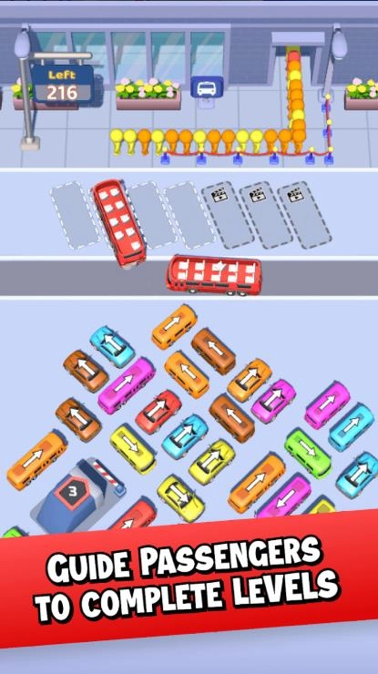 这款游戏巧妙融合了交通管理、路径规划与匹配益智三大核心玩法,彻底颠覆了传统方块匹配和数字消除的枯燥感。你的任务不只是驾驶大巴精准行驶,还要在有限空间里规划路线、避开障碍、灵活转弯,同时让车上乘客顺利抵达目的地。游戏节奏轻松却不乏挑战,色彩鲜明的画面与趣味十足的音效,更为整体增添了不少活力。随着关卡推进,你会解锁多样化的地形结构、更复杂的障碍物组合以及全新玩法机制。