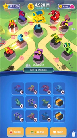 拥有三十余种属性与造型各异的炮台,每一款都具备独特的功能。