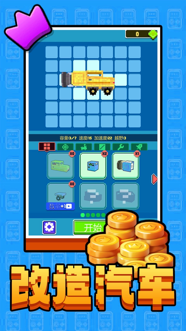 3、每一次的动作冒险非常的精彩呢,并且像素汽车的实力很无敌哦。