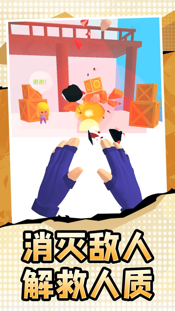 完成手势攻击,消灭敌人,解救场景中的人质,推动关卡进程。