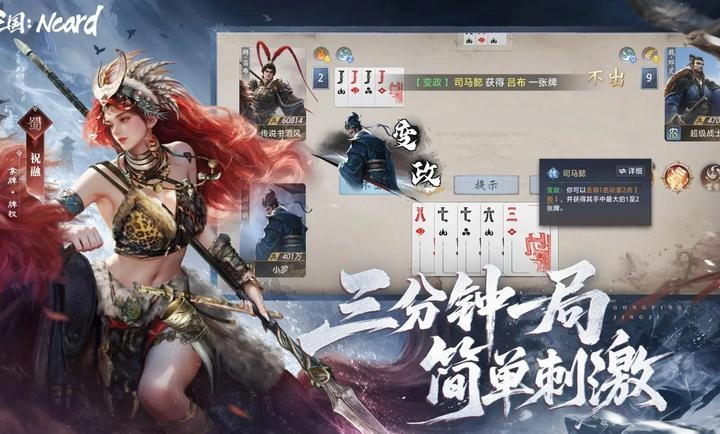 代号三国Ncard以三国历史为基底,巧妙融合了别具一格的策略与竞技要素。玩家能够化身为不同身份的角色,在单人或团队模式下领略多样战术搭配的魅力。每局对战仅需三分钟,游戏节奏因此十分紧凑,让玩家无论何时何地都能畅享快节奏对决的快感。游戏了丰富的卡牌收集机制,玩家在投身竞技的过程中,还能感受到收集与养成带来的乐趣。不管是初入游戏的新手,还是经验丰富的老手,都能在这个满是挑战与机遇的世界里寻觅到专属于自己的乐趣。
