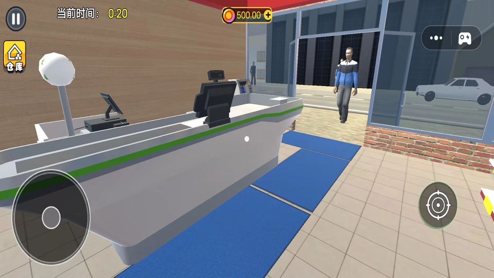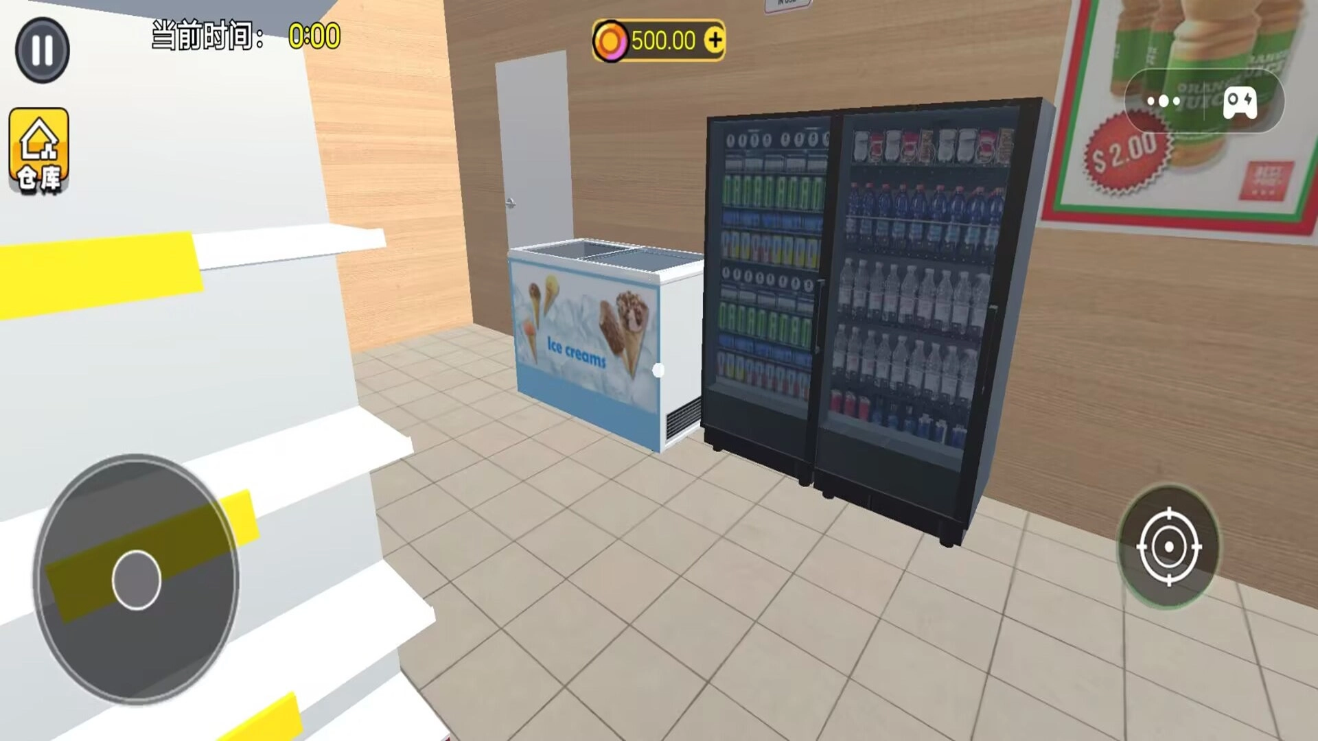进入超市后,通过虚拟摇杆来自由控制移动,先熟悉货架、收银台这类区域;接着按照引导去调整整体布局,添加新的货架,并对顾客的动线进行规划。