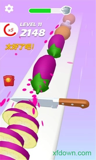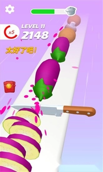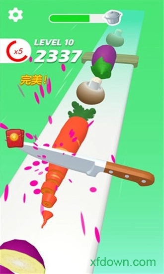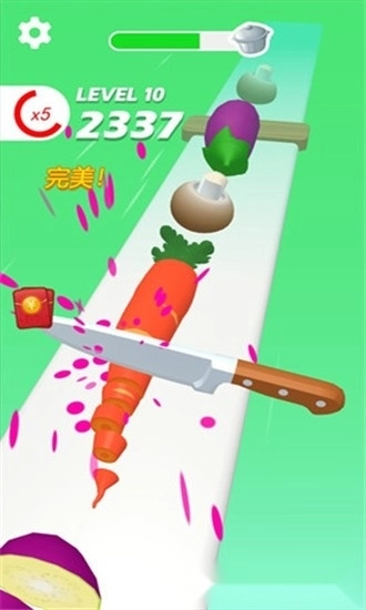 3、这款游戏把蔬菜和现实巧妙融合,你可以在这里尽情展现用菜刀的技艺,完全不用担心会割伤手指——毕竟你可是超级厨师呢!
