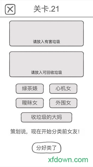 3、玩家需要对形形色色的前任进行有效分类,通常得经过一番恰当思考,才能正确答题顺利过关。