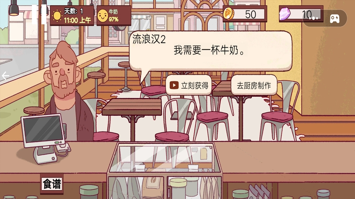 设有订单系统,顾客会提出饮品需求,玩家可选快速提供饮品,或去厨房制作考验时间管理和决策能力。