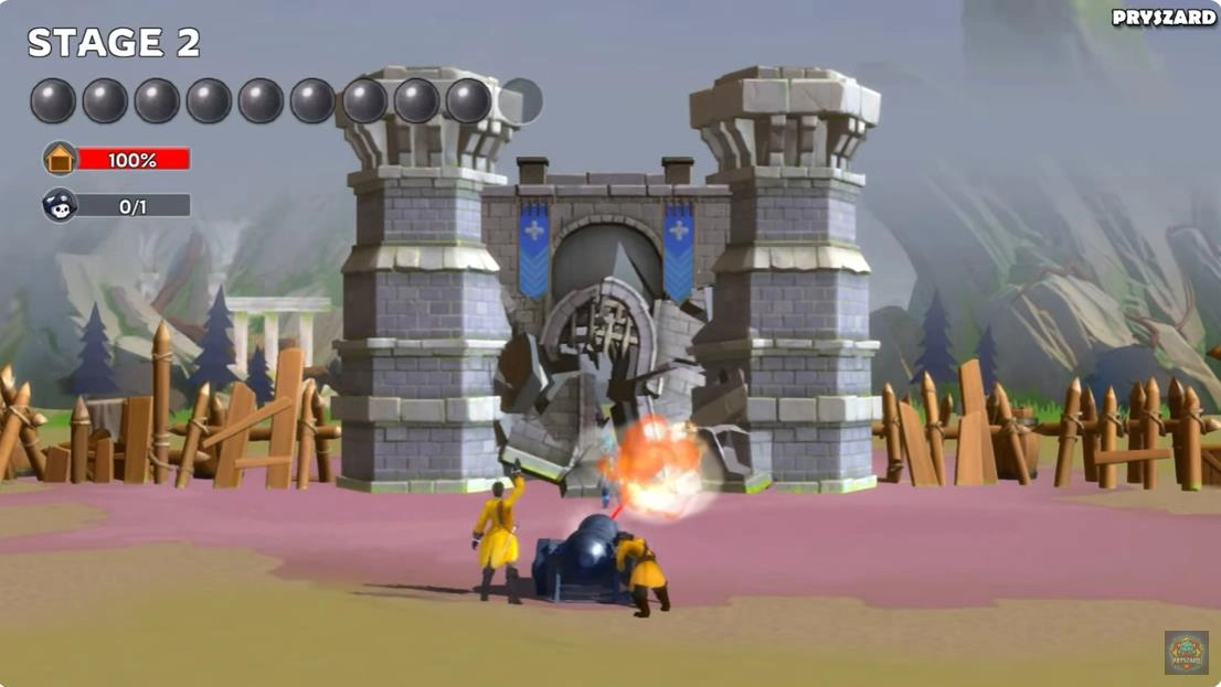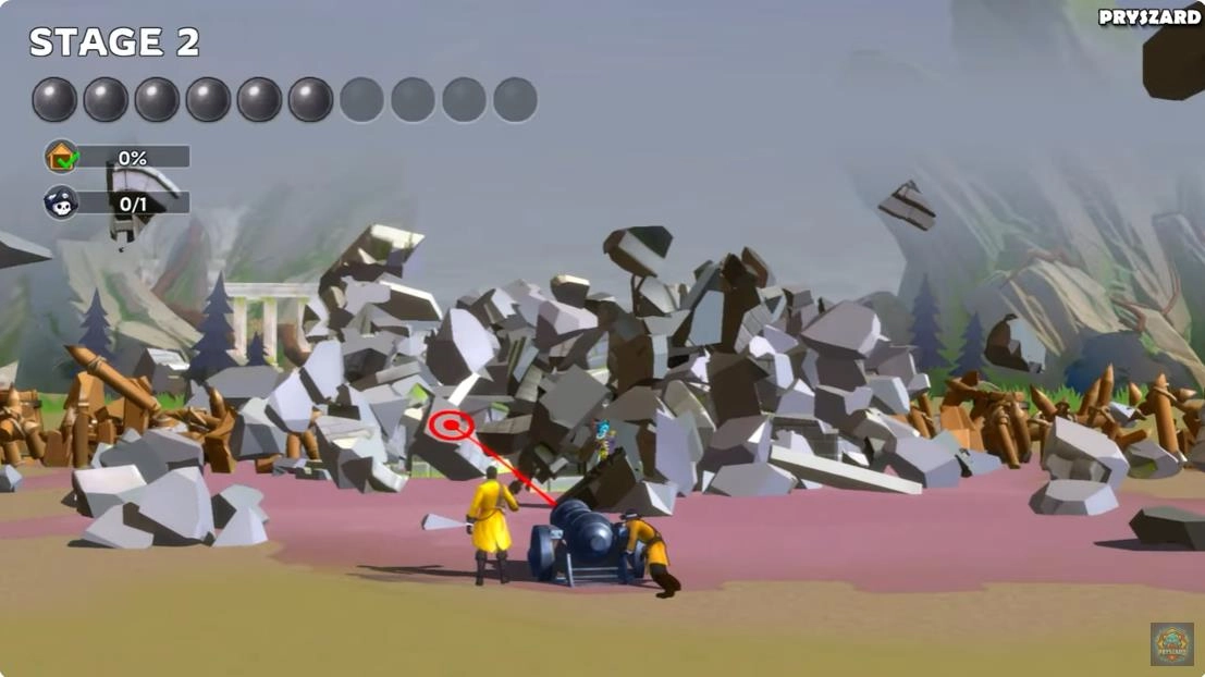 发射炮弹,触发连锁反应摧毁建筑。
